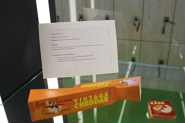 Johanna Kossinna entwarf eine Verpackung für ein Schmuckstück, das sich von einer Brosche in ein Collier verwandeln kann. Elisabeth Zeeh entwarf eine Verpackung für Maulschlüssel mit magnetischer Halterung für die Maulschlüssel, die man auf die Werkbank stellen kann. Mario Altmann entwarf eine Verpackung für Cheddar Hartkäse, bei der man den Käse nach vorn schieben kann, um ein Stück abzuschneiden, sodass nicht immer das ganze Käsestück entnommen werden muss. from 15. February 2019 Aufgerissen XI Studierende präsentieren selbst entwickelte Verpackungen more information